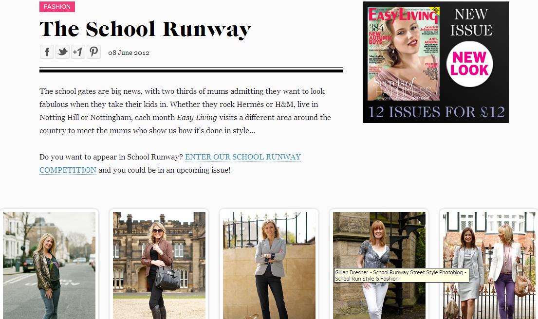 Yep, a feature on a UK website called “School Runway”* that solicits information from school mums on who they’re wearing and who their style icons are. La is in several states of disbelief: there is a corner of a foreign land where women dress this well for drop off? Some women are actually willing to throw some posey shapes outside the school gates? Said women are happy to namecheck the elements of their ensemble: Dries van Noten, YSL, Chloe, Mulberry etc? They wear these labels to school?