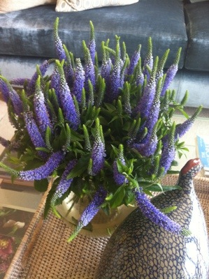 Mystery bloom of the day: anyone know what they are? Love them, as do the Fat Bird and the blue sofa.