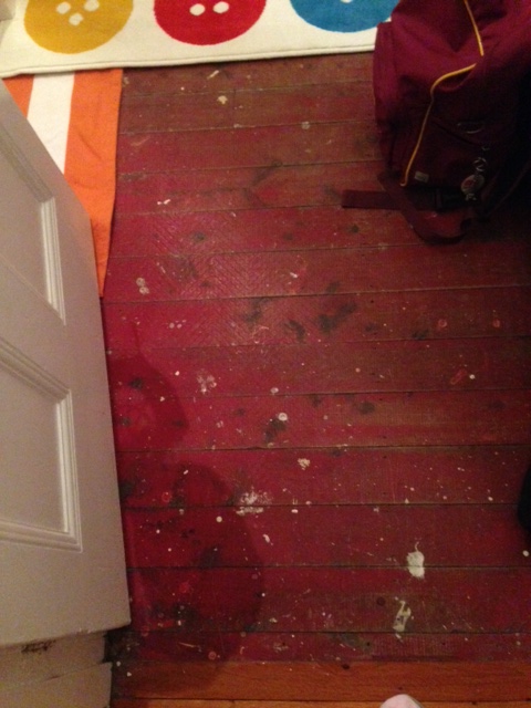 Speaking of grumpy sods earnest men, Seriousimo has been very, ahem, serious of late. La promised him that ripping up a bunch of stinky old carpets in our new palazzo* was the right thing to do, because the floors they concealed were sure to be clean, varnished and character-filled (read: requiring no reparative investment).