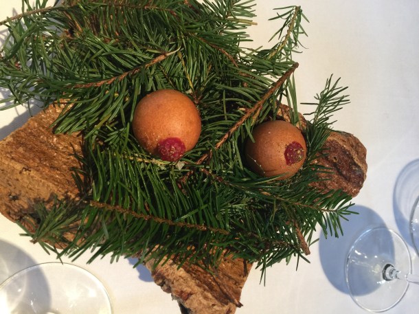 One of the Ledbury yummies was this slightly nipplish nibble. Festive and saucy all at once.