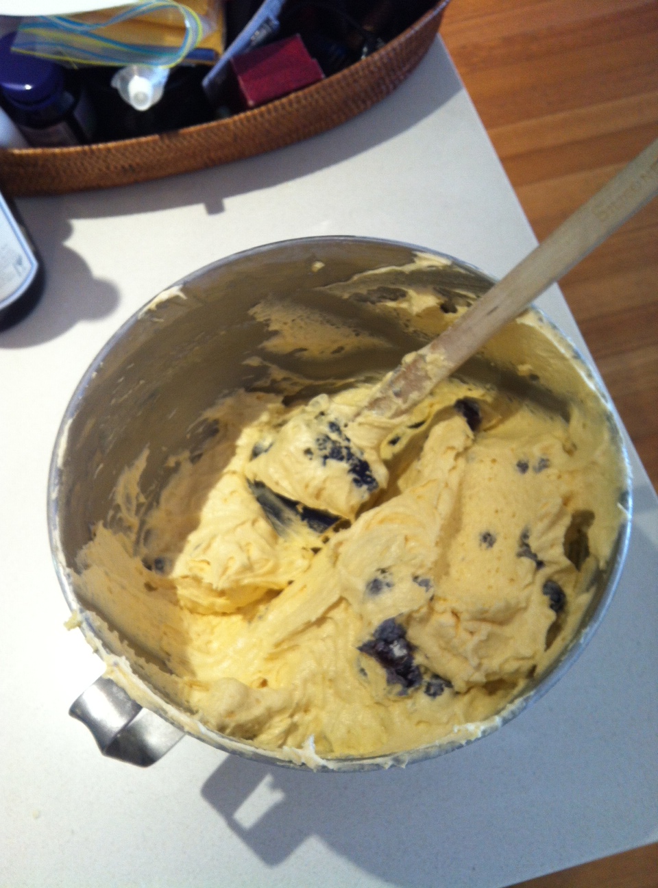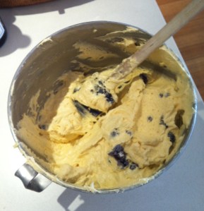Does this photo make you as happy as it makes me? Behold la batter for la blueberry and sour cream cake, courtesy of La Martha. And because it’s wholesome Americana cakey fare, you can be sure it has more of everything than a beating heart needs in a lifetime: 340g butter; nine — yes, nine — eggs; and one pound (!!!) of flour. That made two cakeys, but both were huge.