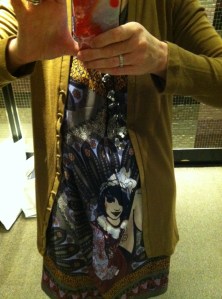 GOTCHA! It’s not a clutch, it’s a make-up bag! Can you believe the lining of something so stylish is destined to bear foundation and mascara streaks? It was a present from my friend Yankee Doodle. She gives great gift, that Miss Doodle.